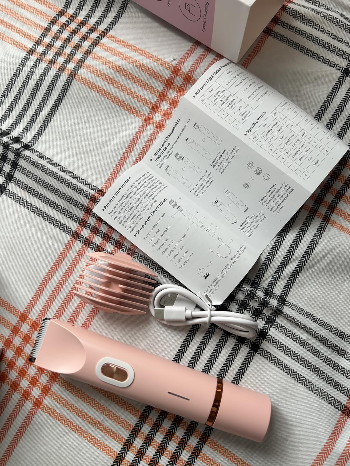 I loved this clipper! The design is super cute and surprisingly comfortable to hold. It’s lightweight, quiet, and trims really smoothly without pulling or irritating the skin. The battery lasts a long time and charges quickly with the USB cable, which is great for travel. I also love the adjustable comb because it makes it easy to choose the exact length you want. Really practical for simple, hassle-free grooming at home. 💖